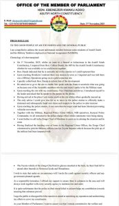Mr. Addo described the reports implicating him as “false narratives aimed at tarnishing my reputation,” stressing his commitment to peace and collaboration with all security agencies.