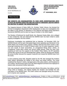 The Inspector-General of Police (IGP), Mr. Christian Tetteh Yohuno, has directed the Criminal Investigations Department (CID) to take over investigations into a violent attack on the Director of Operations of the National Anti-Illegal Mining Operations Secretariat (NAIMOS) and his team at Hwidiem in the Ahafo Region.