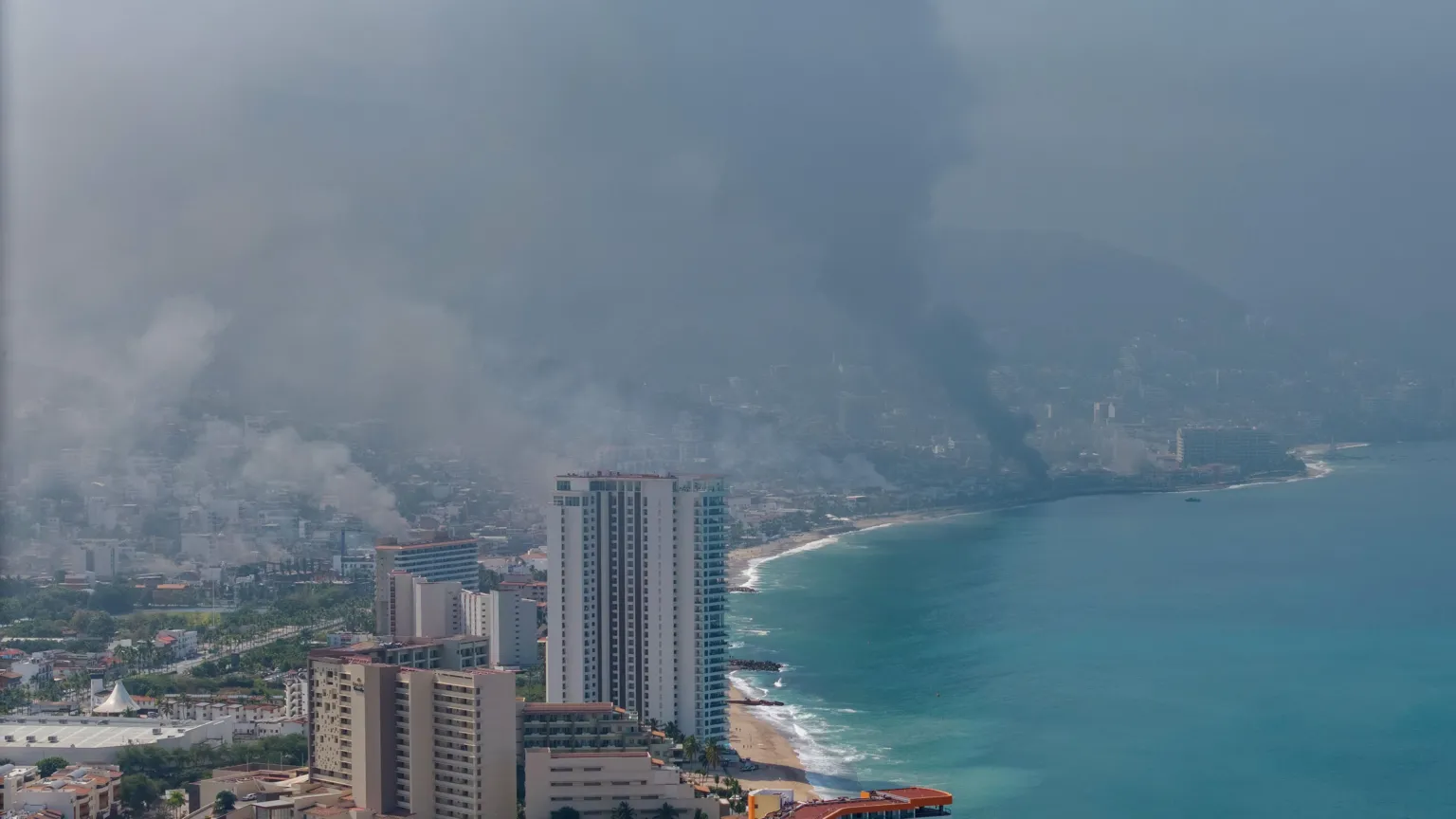 In Puerto Vallarta, on Mexico’s Pacific coast, tourists were told to shelter in place on Sunday. Videos showed black smoke billowing from burning cars in several neighbourhoods, with one tourist describing the scene as looking “like a war zone”. Around 300 visitors were stuck at Puerto Vallarta’s airport after flights were cancelled due to the violence. To ensure their safety, they were transferred to the city centre in a convoy with a heavy police escort.