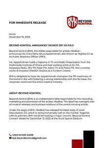 The label and its partners are also preparing for the highly anticipated Beyond Kontrol Concert slated for December 13, 2025, at the Accra Sports Stadium.